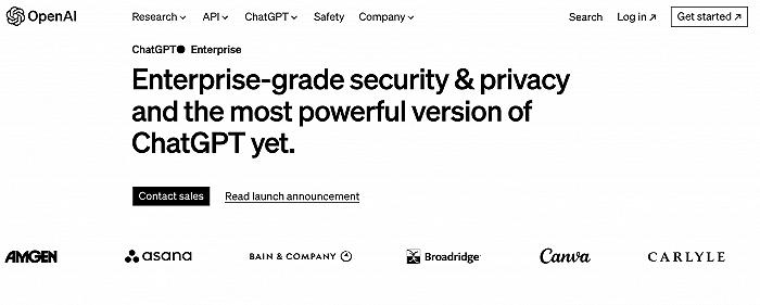 OpenAI方面表示,不少大型企业对其企业级新品感兴趣,自ChatGPT九个月前推出以来,已经被超过80%的财富500强公司团队采用,包括Block、Canva、雅诗兰黛、普华永道等大型企业也已提前试用了ChatGPT企业版的Beta版本。此后,OpenAI也将针对小型机构推出ChatGPT商务版本,并提供更多定制化选项。
