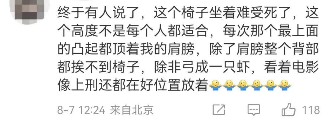 不仅如此,影院按摩座椅的后背位置普遍需要增厚,整个人坐上去都有被往前顶的倾向,坐起来特别累,被网友称为当代年轻人的第一张“老虎凳”。