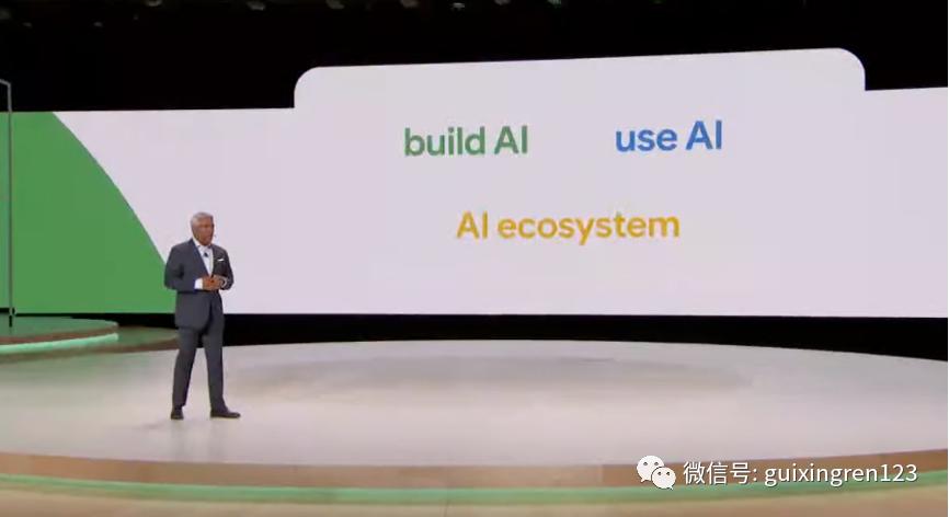 接着,谷歌宣布围绕着如何创建AI(Build AI)、使用AI(Use AI)和打造AI全生态(AI Ecosystem)的主题,从开发端到使用端,从基础设施到应用生态,再次抛出了一系列的新产品和功能更新,朝着AI时代全面进军。