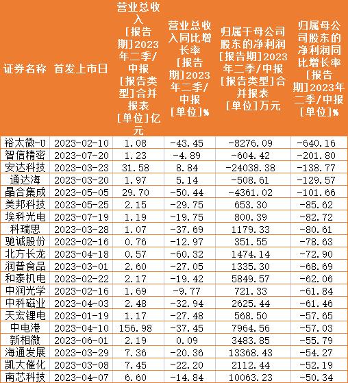 综合来看,目前已经超过20家今年新上市公司半年报业绩“腰斩”,部分新上市公司的业绩并不算优秀。
