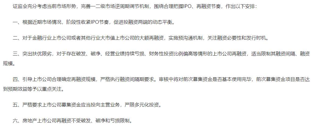 值得一提的是,或许为了减小抽血效应,证监会也对再融资进行了限制。比如,对于金融行业上市公司或者其他行业大市值上市公司的大额再融资,实施预沟通机制,关注融资必要性和发行时机;引导上市公司合理确定再融资规模,严格执行融资间隔期要求。