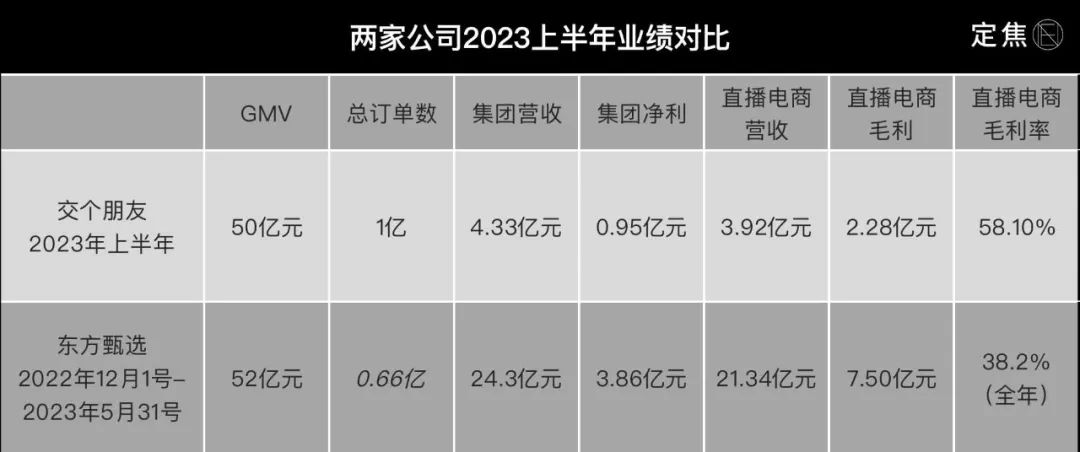 注:东方甄选的数据来自于2023财年年报(截至2023年5月31日)与2023财年中报(截至2022年11月30日)相减得出 / 「定焦」制图