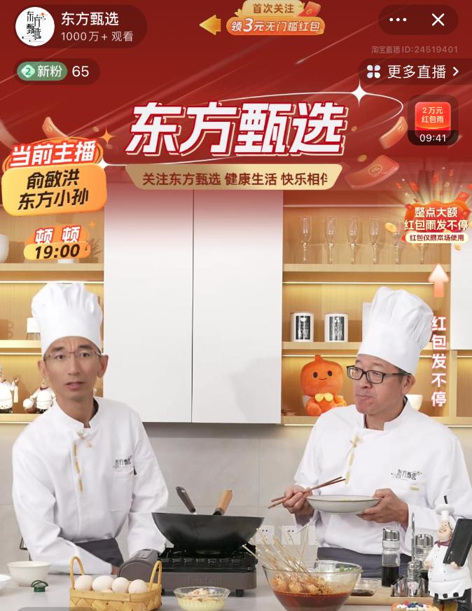 东方甄选在淘宝平台的首播,由YOYO、顿顿、中灿、冬冬四位东方甄选主播各轮流直播2小时,俞敏洪和孙旭东于当天下午5点登场。