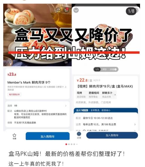 不甘落于人后的山姆虽没好意思挂上网上呼声极高的“踏马价”,却也抛出了月饼、西瓜、麻薯等其他热门产品上场。