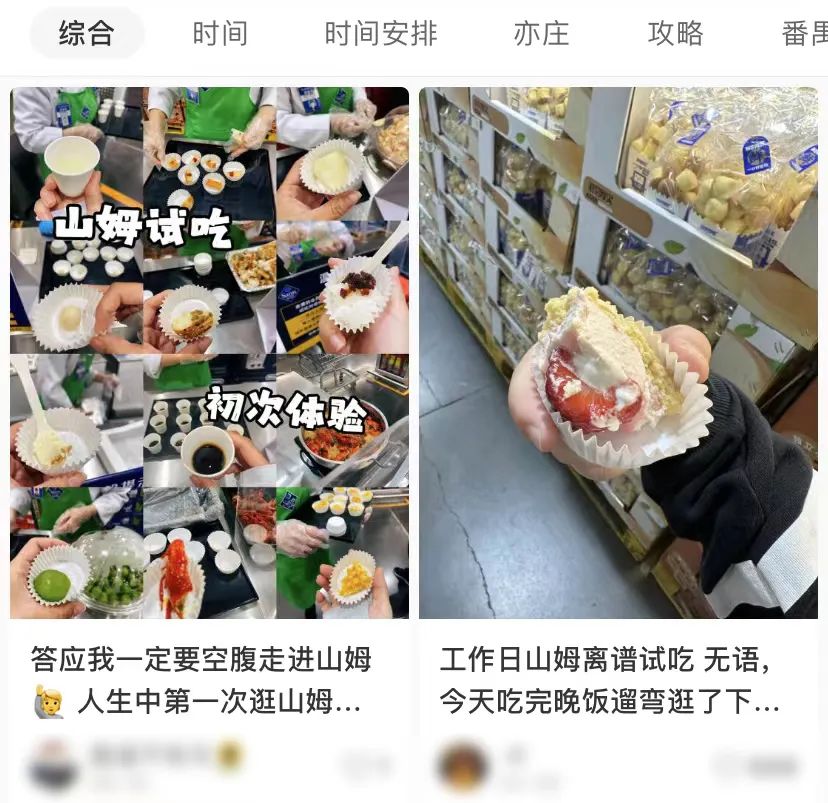 和盒马相比更倡导体验型消费的山姆,则把笼络人心的招数都放在了“填鸭式试吃”上。