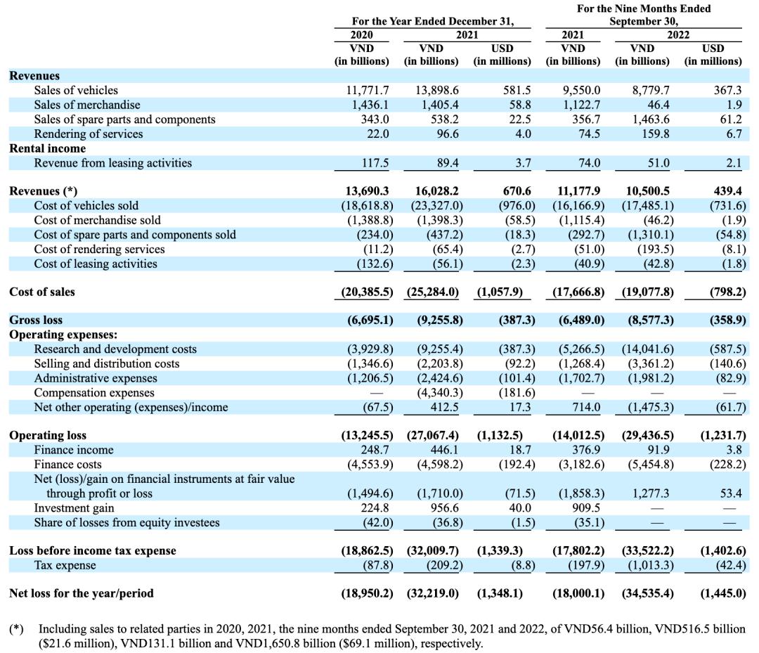 招股书中也出现了蛛丝马迹。VinFast2021年营收为6.7亿美元,运营亏损为11.33亿美元,净亏损为13.48亿美元;2022年营收为6.34亿美元,运营亏损为17.91亿美元,净亏损为21.12亿美元,亏损进一步扩大。