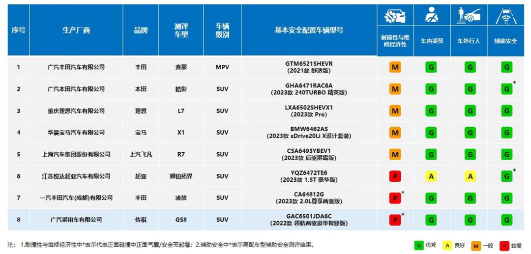 C-IASI中保研碰撞测试2023年第一批测试结果图片来源:C-IASI官方网站