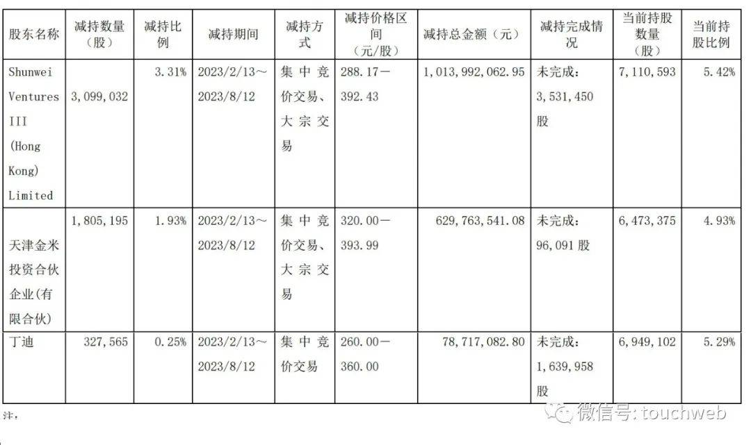 2023年8月,石头科技发布公告,披露公司股东顺为资本、小米及丁迪减持情况。其中,顺为资本在2023年2月13日至2023年8月12日通过集中竞价交易、大宗交易的方式减持石头科技,减持均价为288.17元到392.43元,套现总额为10.14亿元。