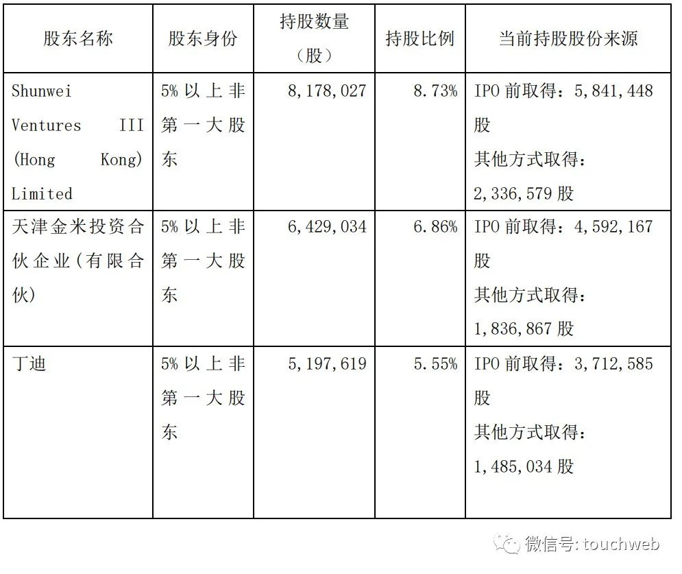 截至2023年6月30日,昌敬持股为23.15%,顺为持股为6.01%,小米旗下天津金米投资合伙企业(有限合伙)持股为5.89%,丁迪持股为5.49%,高榕资本旗下BANYANCONSULTING LIMITED持股为3.5%;