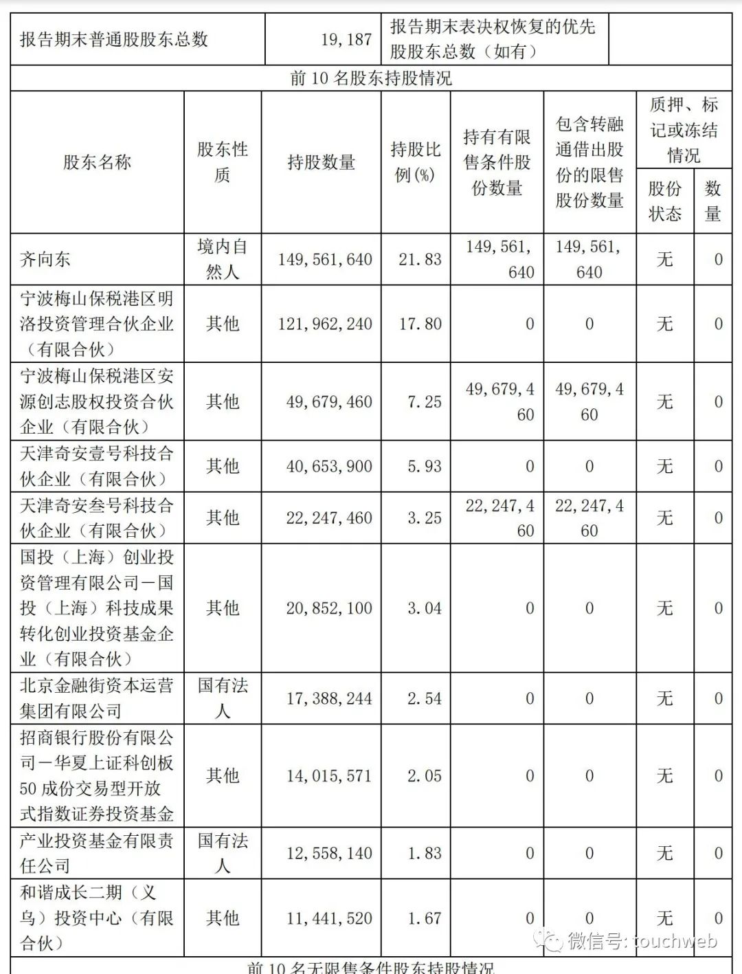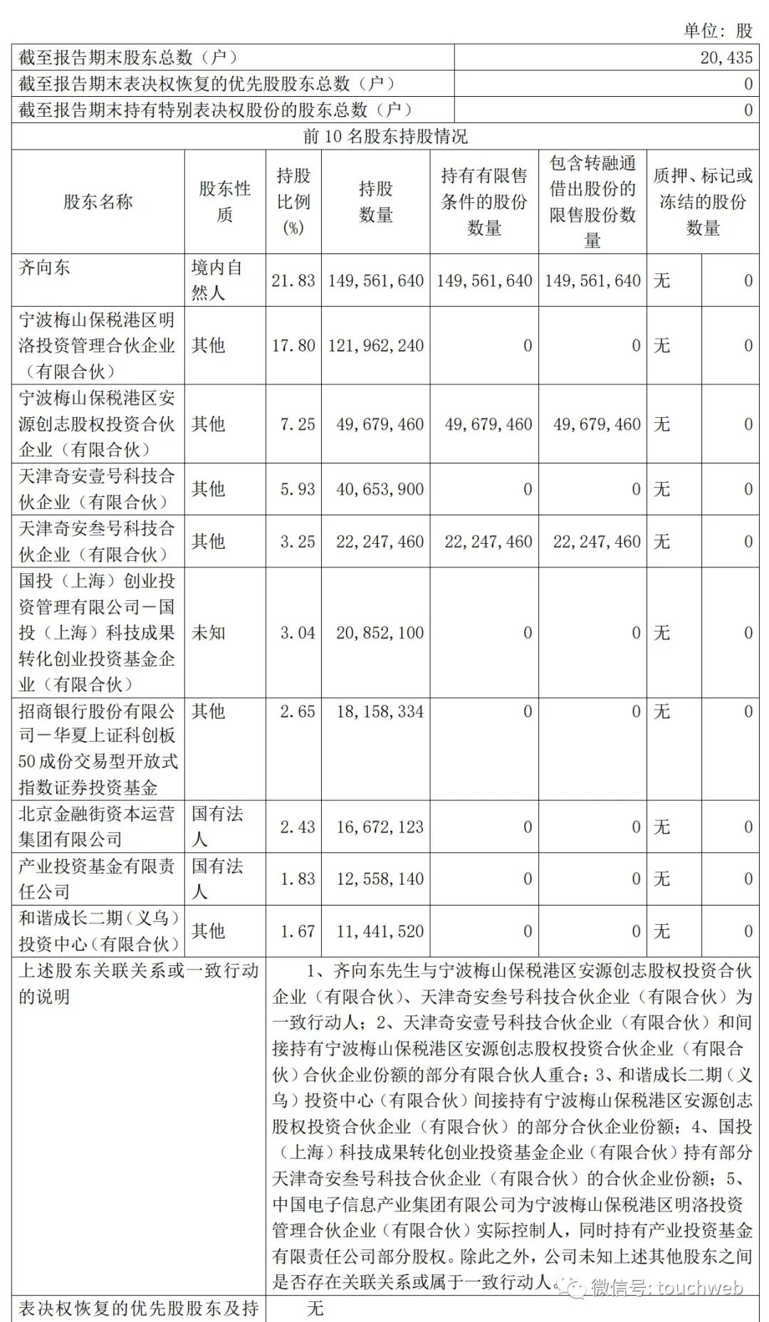 整体来看,奇安信2023年第二季度的股权变化不大。