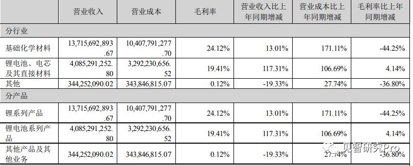与一般的锂盐厂商不同,投入锂电上下游一体化的赣锋锂业,两大业务锂系列产品业务和锂电池系列产品业务分别包括了锂电产业的上游和中游。