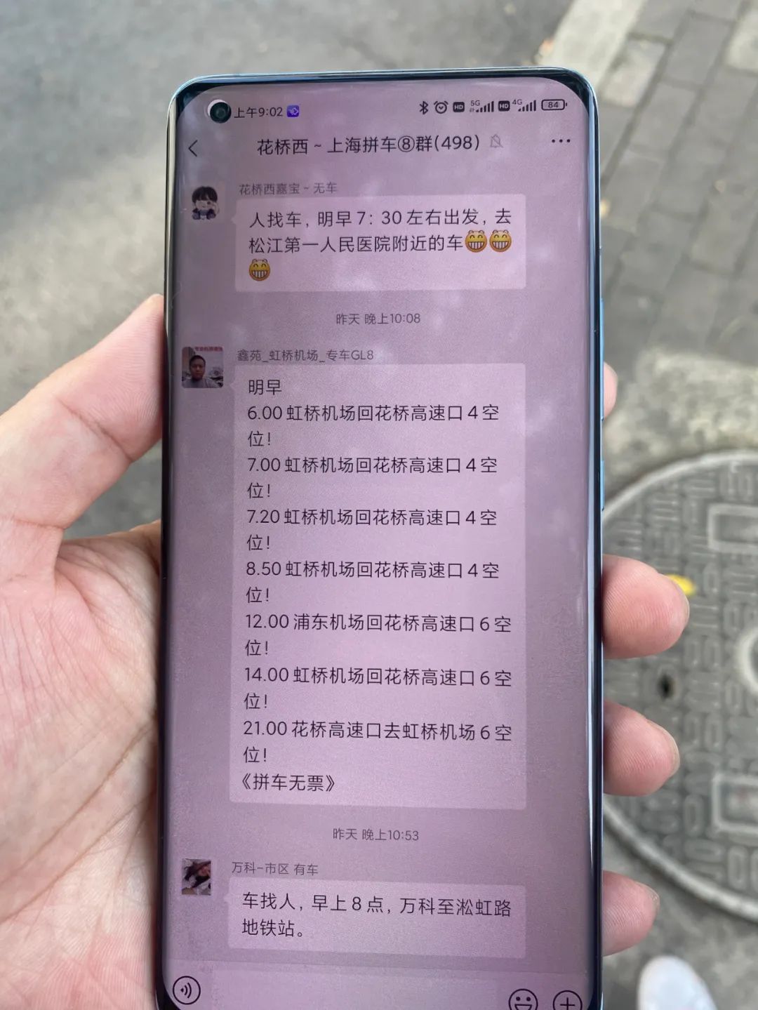 八点半出发到虹桥刚刚好,即便是晚几分钟到,多加会班也没有太多影响,着急的话偶尔打个车,因此他手机有各种各样的拼车群 。