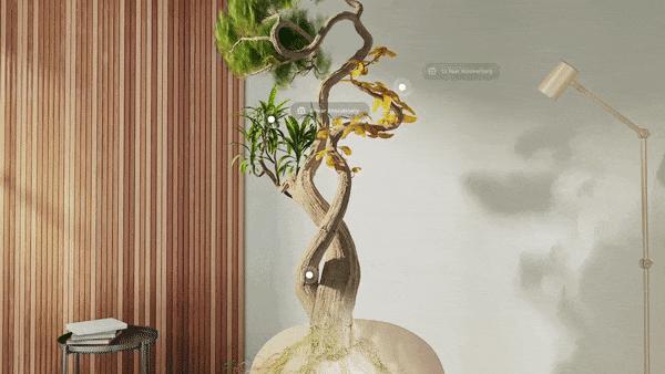 2022 年,元宇宙方兴未艾,SPACE10 推出「碳银行」项目,联动实体家具和 NFT,在区块链上「铸造」一颗数字树,它的生长状况反映了椅子的使用情况,鼓励人们与家具建立更可持续的关系。