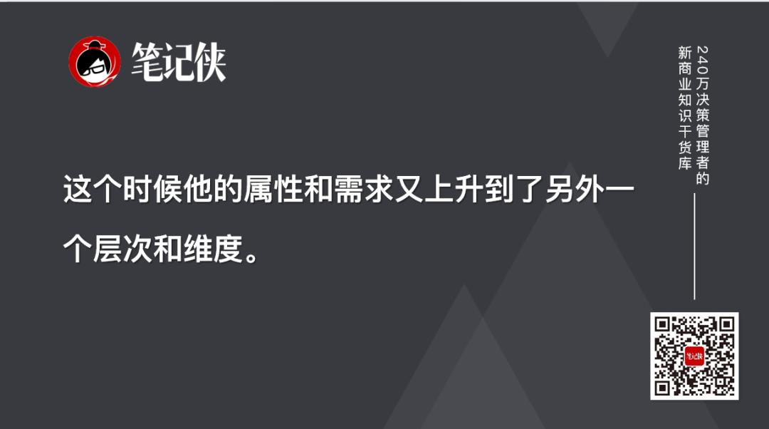 他可能会说挂一个孩子的奖状,可能是挂一幅结婚照。这个时候他的属性和需求又上升到了另外一个层次和维度。