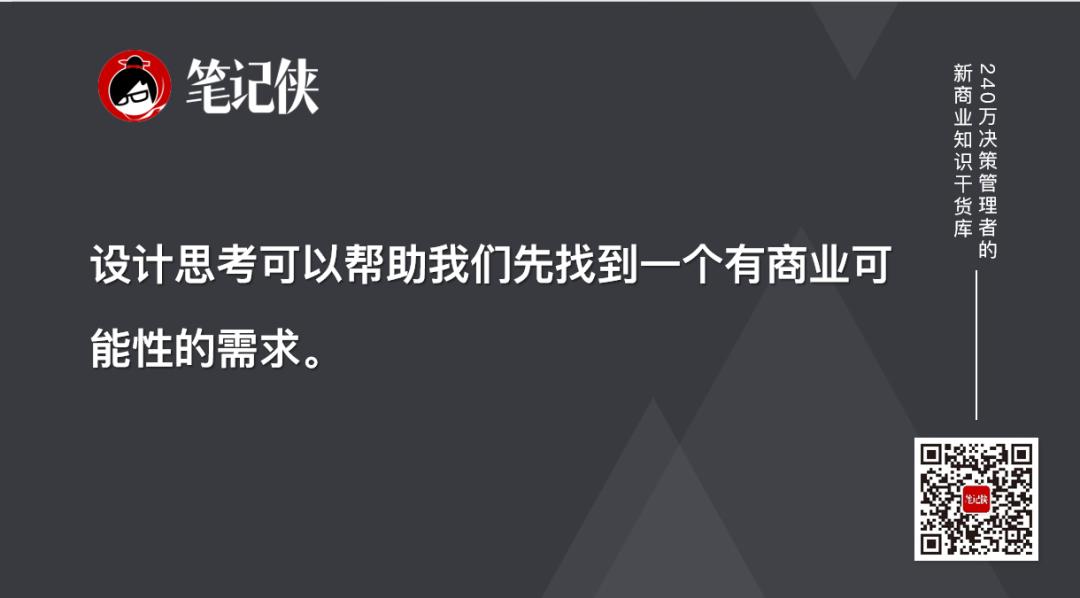 简单来说,设计思考可以帮助我们先找到一个有商业可能性的需求,然后找到一个产品来满足这个需求。