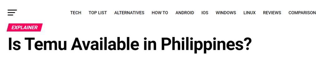 如今,Temu现在终于来到东南亚了,它的第一站是菲律宾。