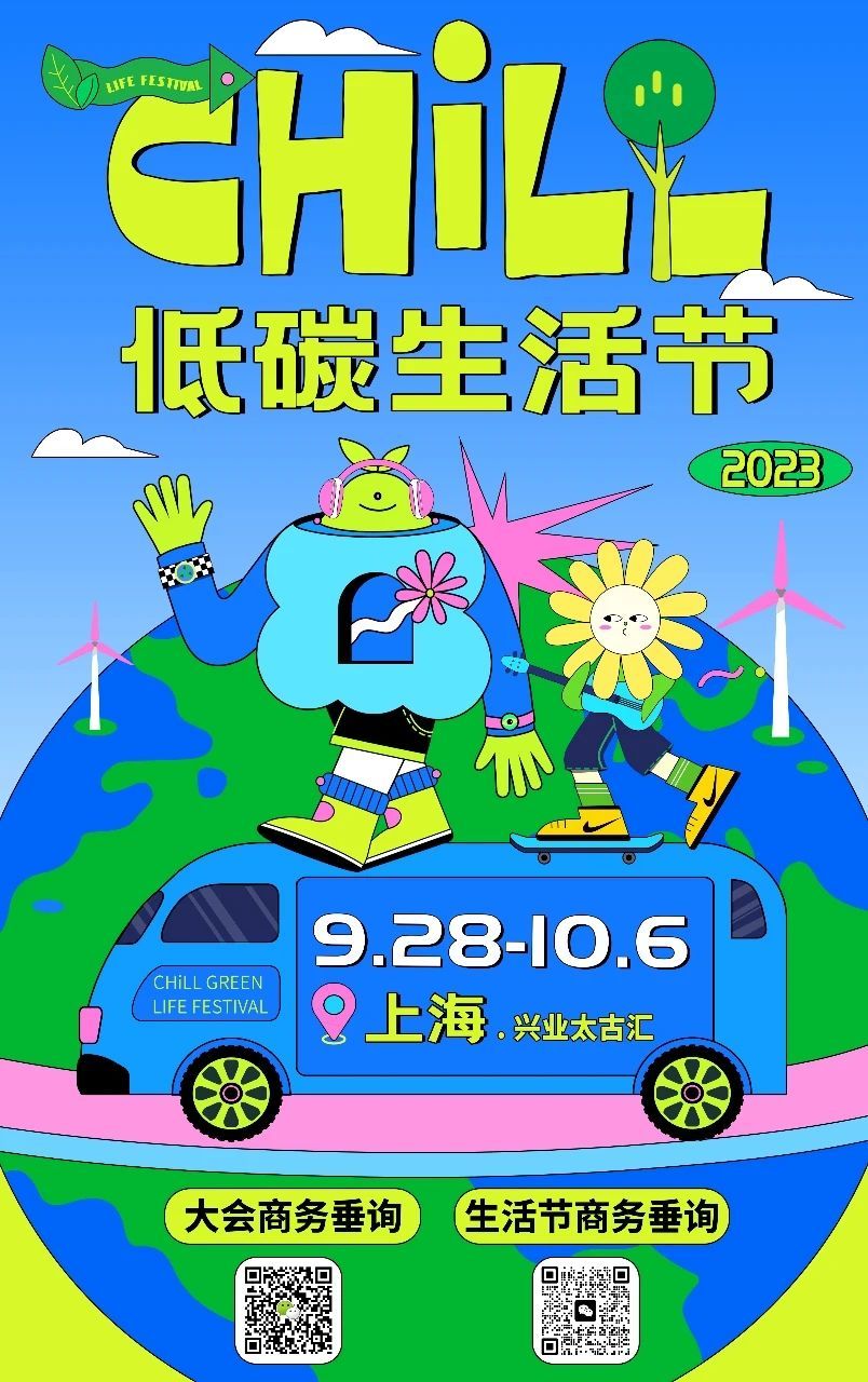9月28日-10月6日,36碳还将联合潮流活动平台「走起Go」,共同发起「2023CHiLL低碳生活节」,届时会有近百个消费品牌、高校、低碳社团、艺术家、博主(如耐克,可口可乐,维洁雅等),通过潮流展位、互动装置、线下活动等丰富有趣的形式,向消费者传递最前沿的低碳生活理念。