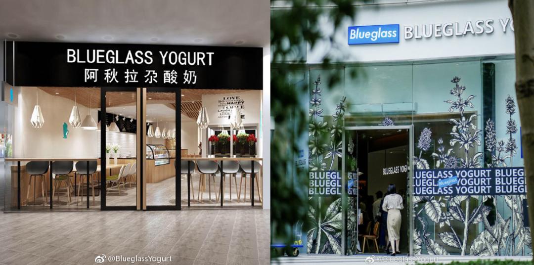 2018年的门店与今年开业的门店,图片来源:微博_@BlueglassYogurt