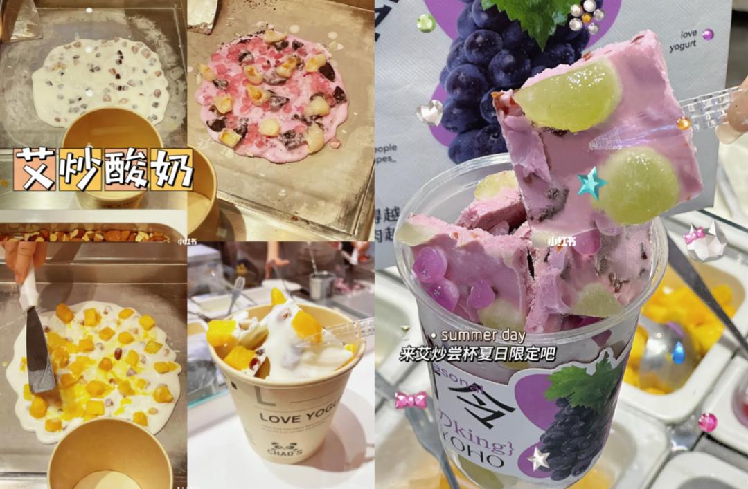 炒酸奶,是用铲子将酸奶、水果 、坚果翻炒,利用快速制冰的原理凝固成片状或块状将液态酸奶转化成固态的吃法。