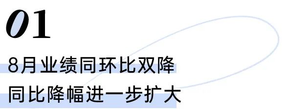 8月,百强房企业绩规模延续下半年以来的低位,保持同环比双降。