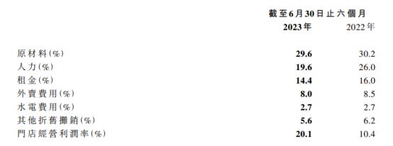 从成本来看,奈雪的茶各项经营成本占比都在下降,其中人力成本得到了大幅度优化,从2022年的26%下降至19.6%。报告期内奈雪的茶员工成本约6.86亿元,去年同期为7.12亿元。