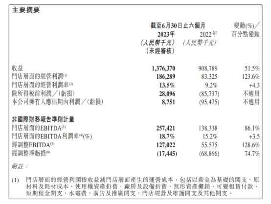 8月29日,达美乐发布了继3月28日港股上市后的第一份业绩公告,报告期内达美乐中国总收入较2022年同期增长51.5%至13.76亿元,股东应占溢利875.1万元,扭亏为盈。