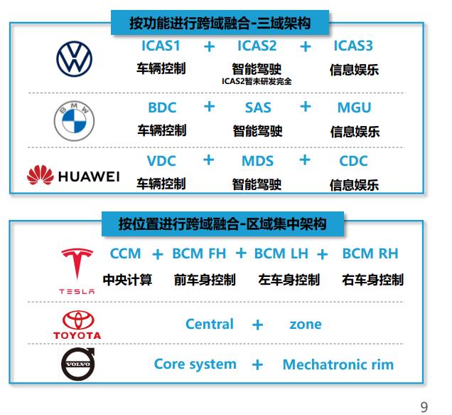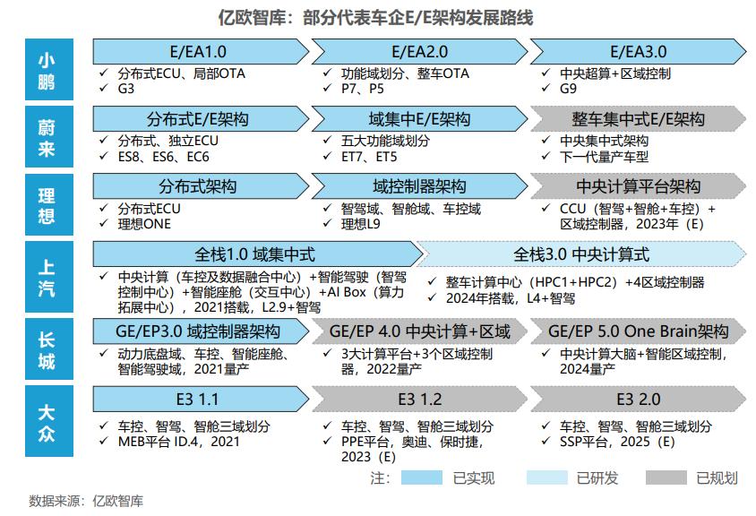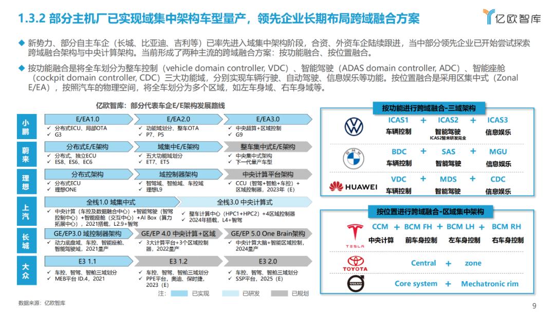 部分主机厂已实现域集中架构车型量产,领先企业长期布局跨域融合方案