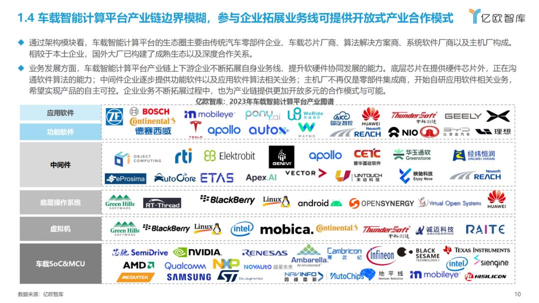 车载智能计算平台产业链边界模糊,参与企业拓展业务线可提供开放式产业合作模式