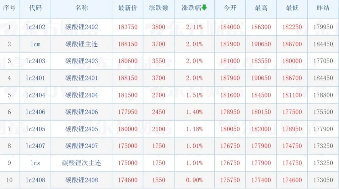 据碳酸锂期货的数据显示,主力合约LC2401(最早交割合约)已跌破19万元/吨,拖累现货价格不断走低。