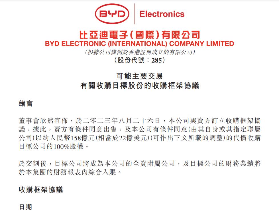 前几日,比亚迪电子准备收购捷普(新加坡)的消息大家都听说了没?