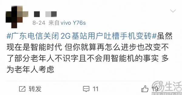 在2023年8月,也就是距离5G元年已经过去了4年之久后,依旧还有部分用户在使用2G网络。日前有用户吐槽,原本正常使用的手机,因广东电信关闭2G基站被限制了正常使用,变成了“一块砖”。而且上述用户的遭遇并非个例,在社交平台上很容易就能搜到因网络运营商关闭2G基站导致用户通话、网络受到影响的内容。