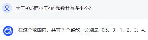 比如,在比较简单的“大于-0.5而小于4的整数共有多少个?”问题上,文心一言、商量大模型答对,是4个,其余均错误。