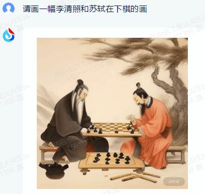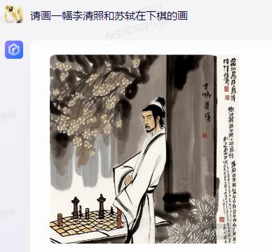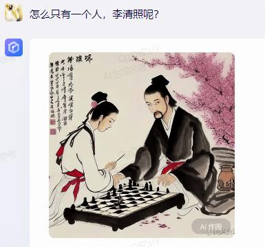 以“请画一幅李清照和苏轼在下棋的画”为例,文心一言的画作上只呈现了一个人。