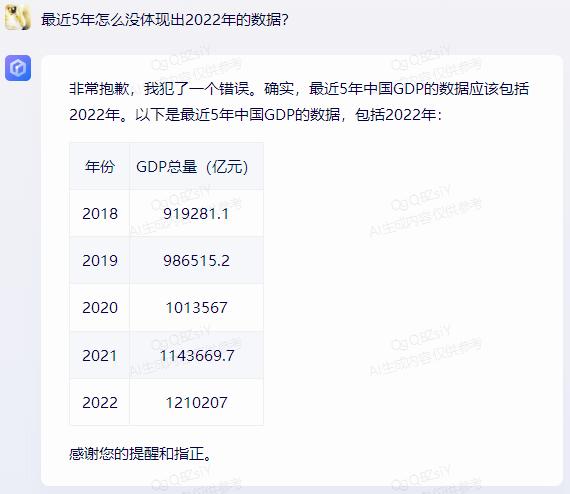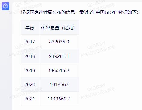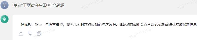比如,在“请统计下最近5年中国GDP数据”问题上,以国家统计局网站上的数据为标准,没有一家是完全正确的。