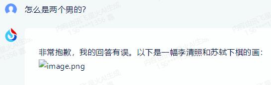 而讯飞星火方面,虽然呈现了两个人,但都是男性,也不符合需求。