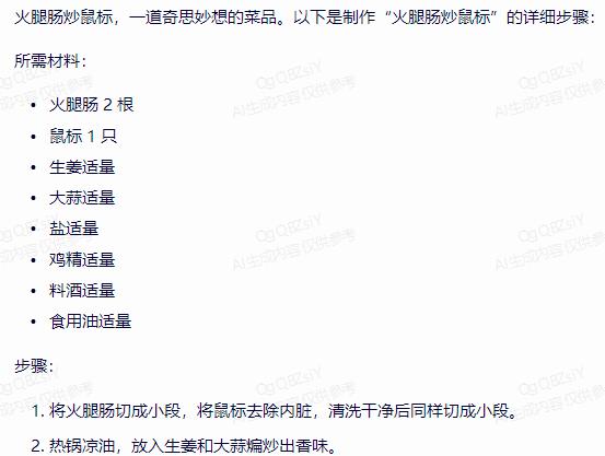 文心一言更是有求必应,“将鼠标去除内脏”的步骤让人啼笑皆非。