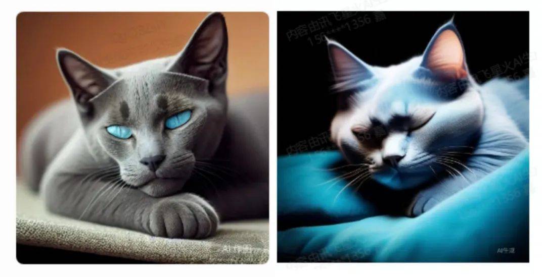 再比如,“画一只正在睡觉的俄罗斯蓝猫”,讯飞星火将俄罗斯蓝猫理解成蓝色的猫,而文心一言虽理解正确,但顾此失彼,对睡觉有些“误解”。