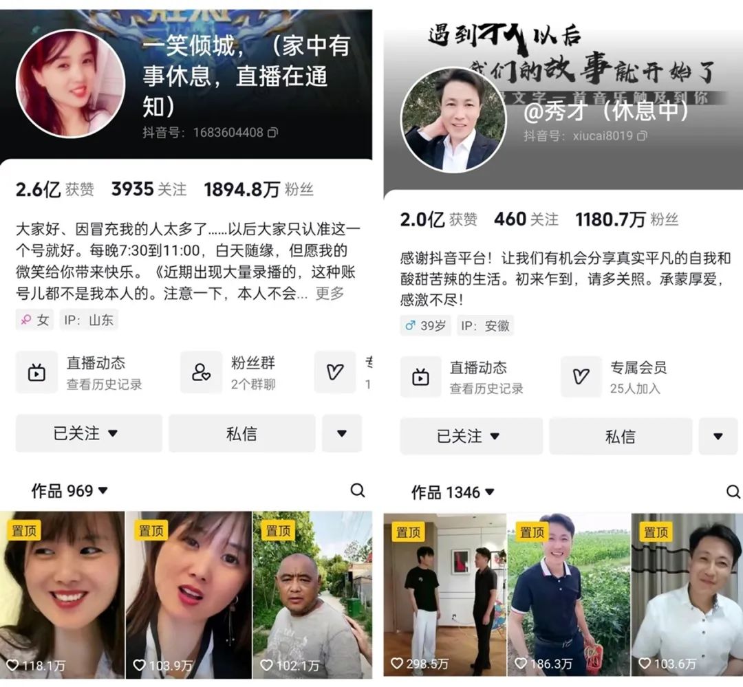 一笑倾城与秀才抖音账号截图