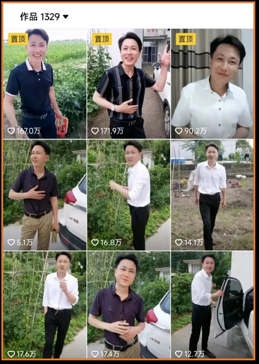 2020年7月,这名来自安徽省亳州市蒙城县漆园镇的39岁男子,发布了自己的第一条抖音视频,视频中的他穿着讲究,假装不经意看镜头,“羞涩”地靠近,之后捂嘴、撩发,开始对口型演唱一些耳熟能详的歌曲。