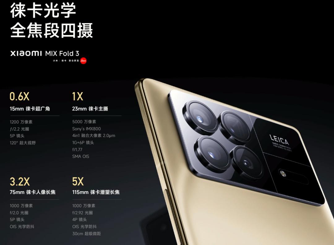 小米 MIX fold 3,把旗舰机的四摄规格及徕卡色彩带到折叠屏上;