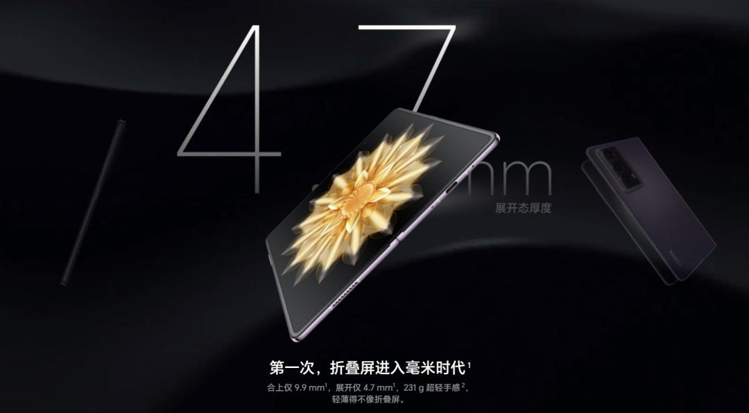 荣耀 magic v2 把厚度做到了 9.9mm,重量 231 克,并且电池高达 5000 毫安时;