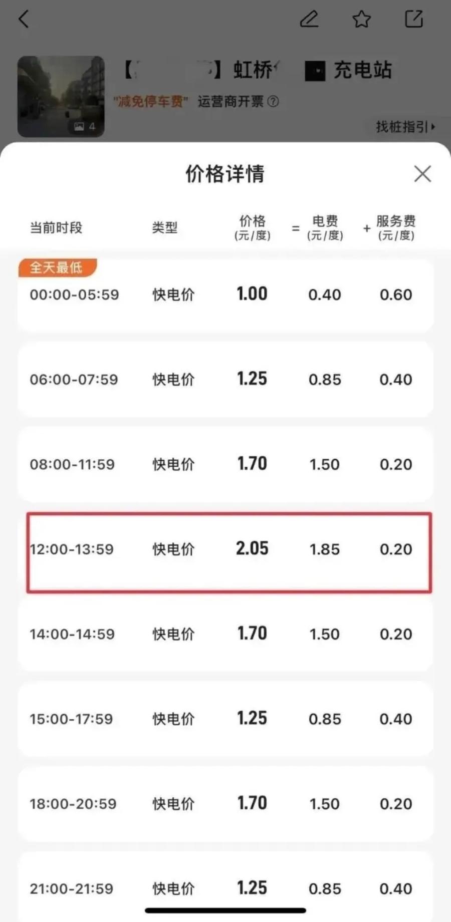 上海某充电站价格表