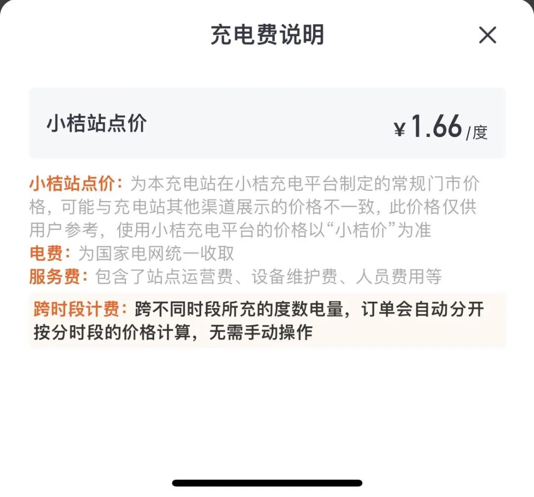 滴滴 App 上的充电费说明