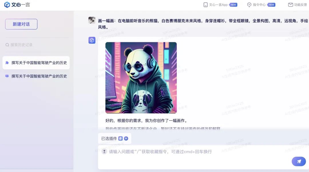 在图文创作等方面,文心一言则有着绝对的优势。只有文心一言目前能直接通过数据制作图表,并且通过其自带的插件与指令进行AI作图,也可以直接输入图像指令,进行图生文创作。除了能输入语音与图片指令的讯飞星火外,其他六款产品基本只能输出文本,并在回答里强调自己是“语言大模型”。