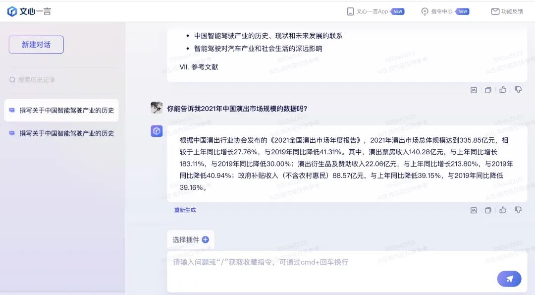 同样在回答中做出分析判断的还有百川大模型和商量SenceChat,例如分析疫情对演出市场产生了影响,以及某些数据更值得注意等。但这并不排除是对网络数据的直接抓取所导致的。