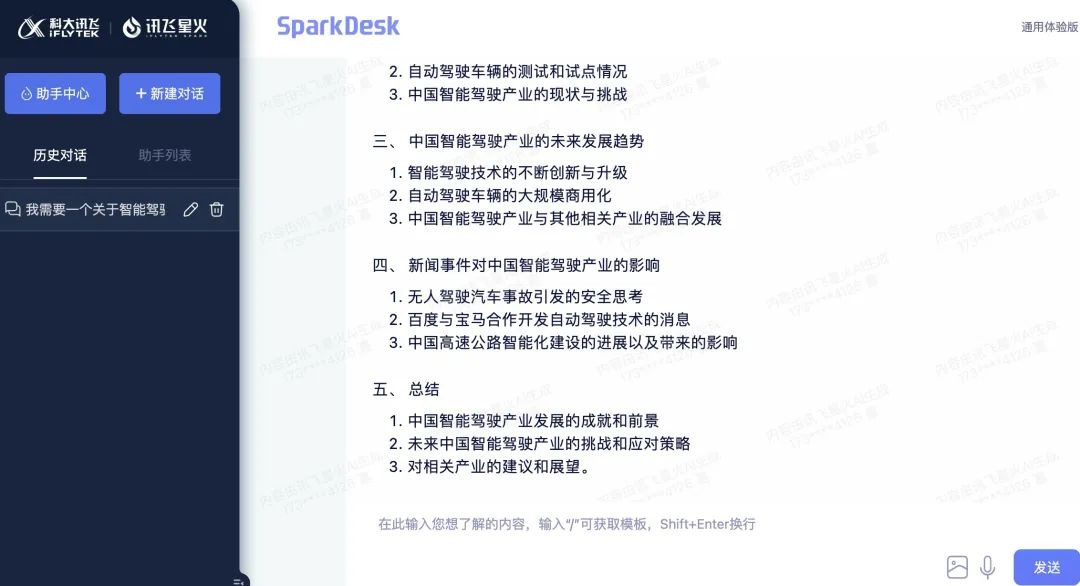 文本创作是工作中的重点。我首先用“智能驾驶市场观察”为题,让大模型们为我撰写提纲,七款产品都给我提供了还不错的答案,其中百川大模型和文心一言的表现不错,提纲撰写更具逻辑性,还会从智能驾驶技术的不同部分、年代进行划分。值得注意的是,我在指令中特意强调了要结合“新闻事件”,大多数回答只是将其作为文章一部分笼统概括,只有讯飞星火列举出了相关事件并引申出了话题。