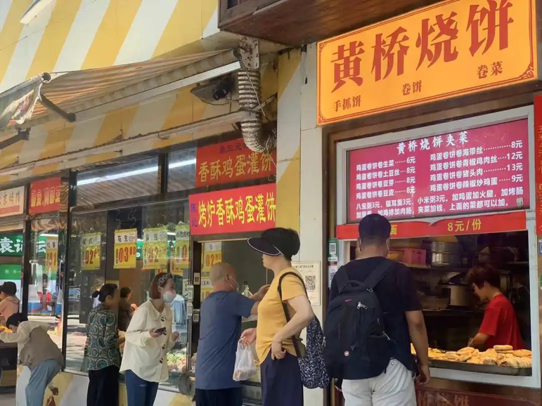 这家店位于九亭大街上,他们的消费者,除了早出晚归的白领和工人,深夜的司机代驾,以及其他餐饮店的打工人。由于有烙饼,他们会营业到下午。
