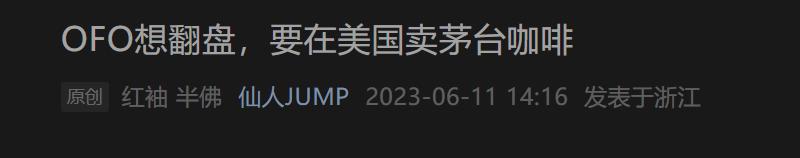 因为早在今年六月,有新闻说OFO创始人去美国搞咖啡的时候,我就建议过他们既然搞咖啡,就要搞茅台咖啡,让酱香玄学洒满世界。