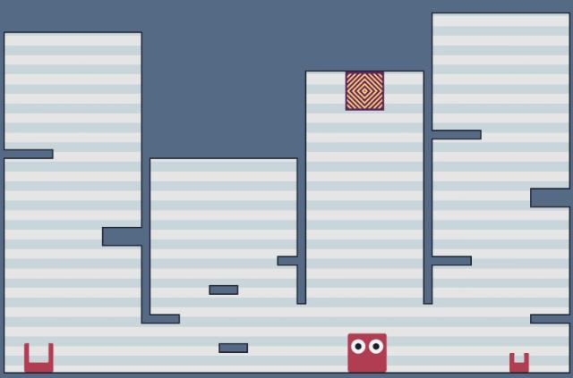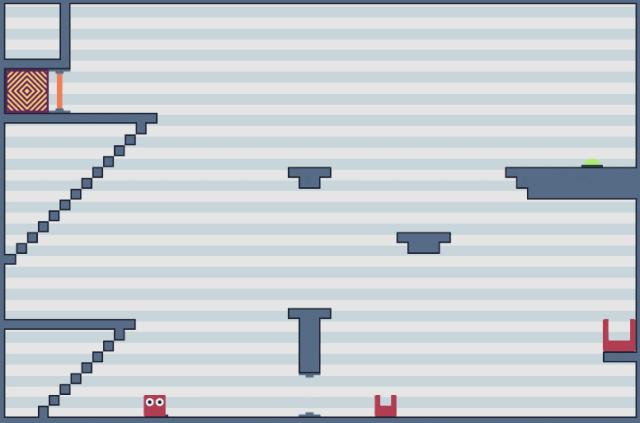 扮演小方块的玩家需要在地图上散落的大小不一的壳之间替换,越过障碍到达终点。游戏规则简单,关卡难度中等,由于方块的跳跃高度与壳的大小直接相关,有些步骤一旦失误就会导致必须重开关卡。但总关数只有 36,耐玩度一般。