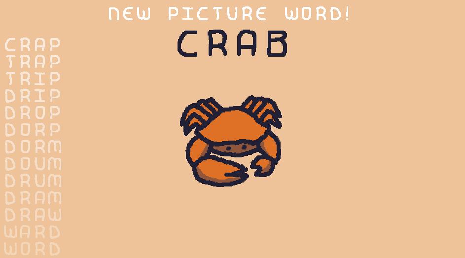 游戏的名字也是教程关中从 Worm 一步步变化来的三个单词。在这些单词中,有一些是有具象的名词,作者为这些词画了可爱的卡通画,称之为图片词。我们的目的就是把图片词收集齐。